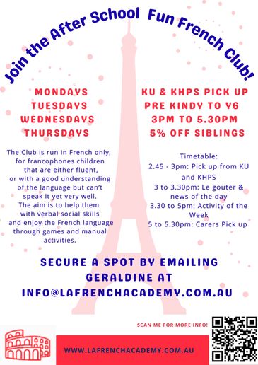 Embark on a vibrant journey with our French language program tailored for all ages, from infants to adults. Our immersive classes blend effective language learning with a relaxed, engaging atmosphere. Through interactive activities, crafts, playful games, and songs, mastering French becomes an enjoyable and enriching experience. Join us in unlocking the joy of learning French! All our teachers and educators have a Working With Children Check. Connect with us now to enroll.